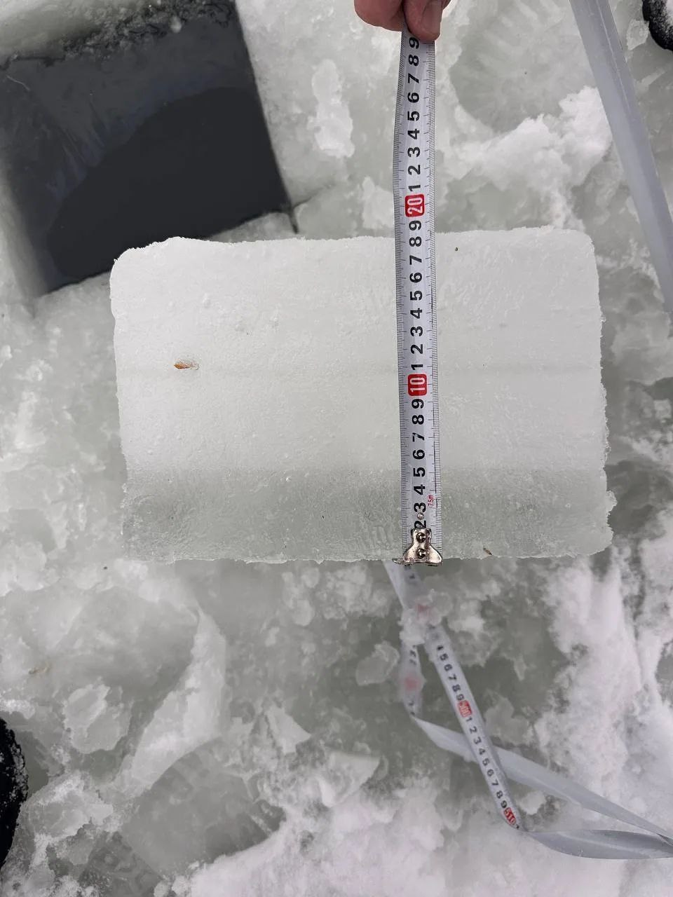 Толщина однородного льда составляет всего 5 см, далее идёт неоднородный слой. Даже одному человеку крайне опасно находиться на льду.