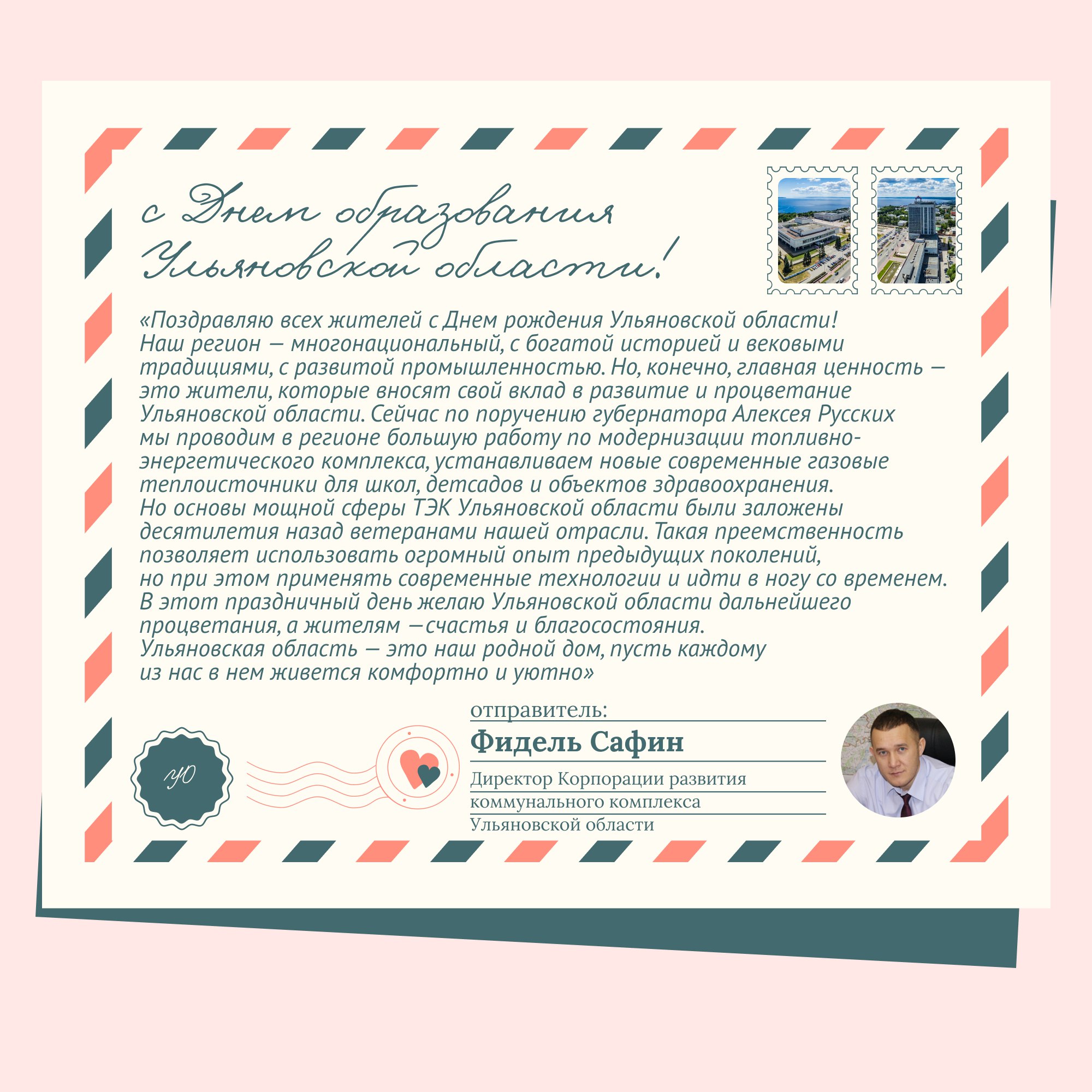 Директор Корпорации развития коммунального комплекса Ульяновской области Фидель Сафин поздравил наш регион с Днем рождения и рассказал, что главная ценность ульяновской земли — люди!