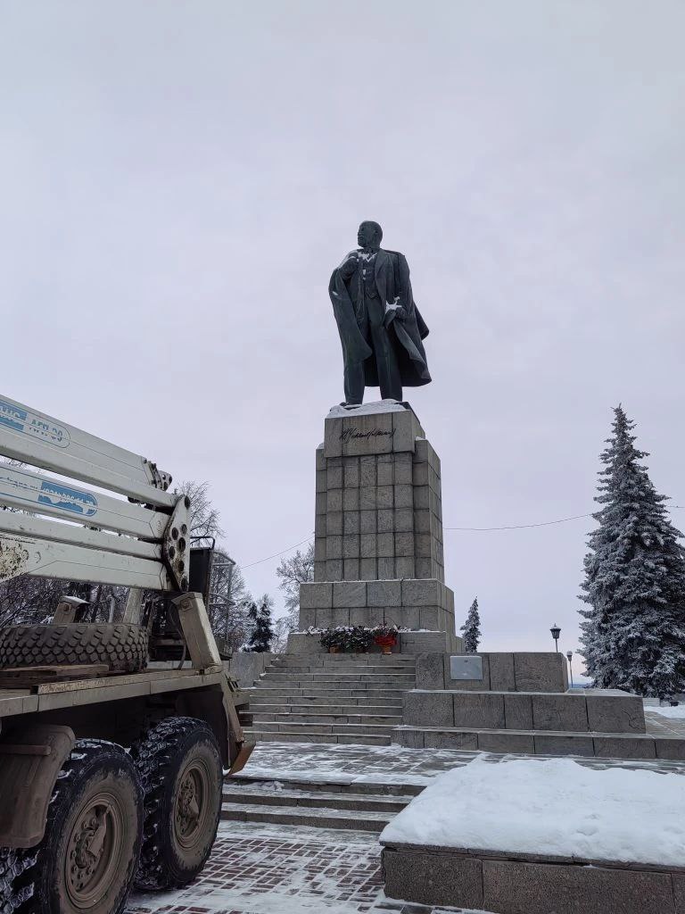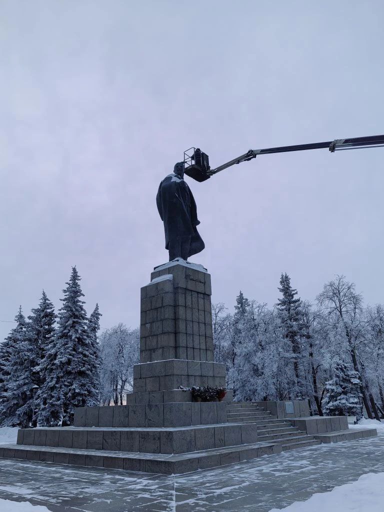В Ульяновске с памятника Владимиру Ленину сняли снежную шапку – занимались этим сотрудники «Горзеленхоза».