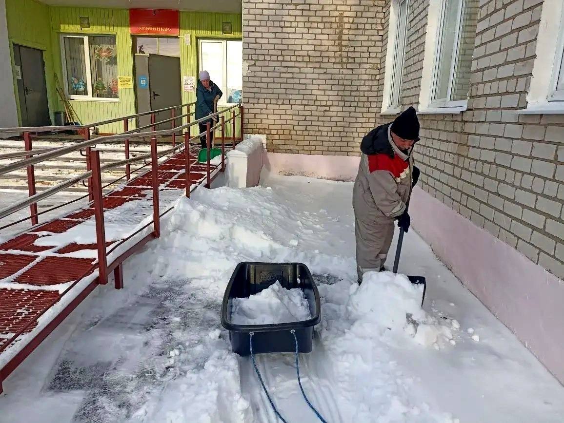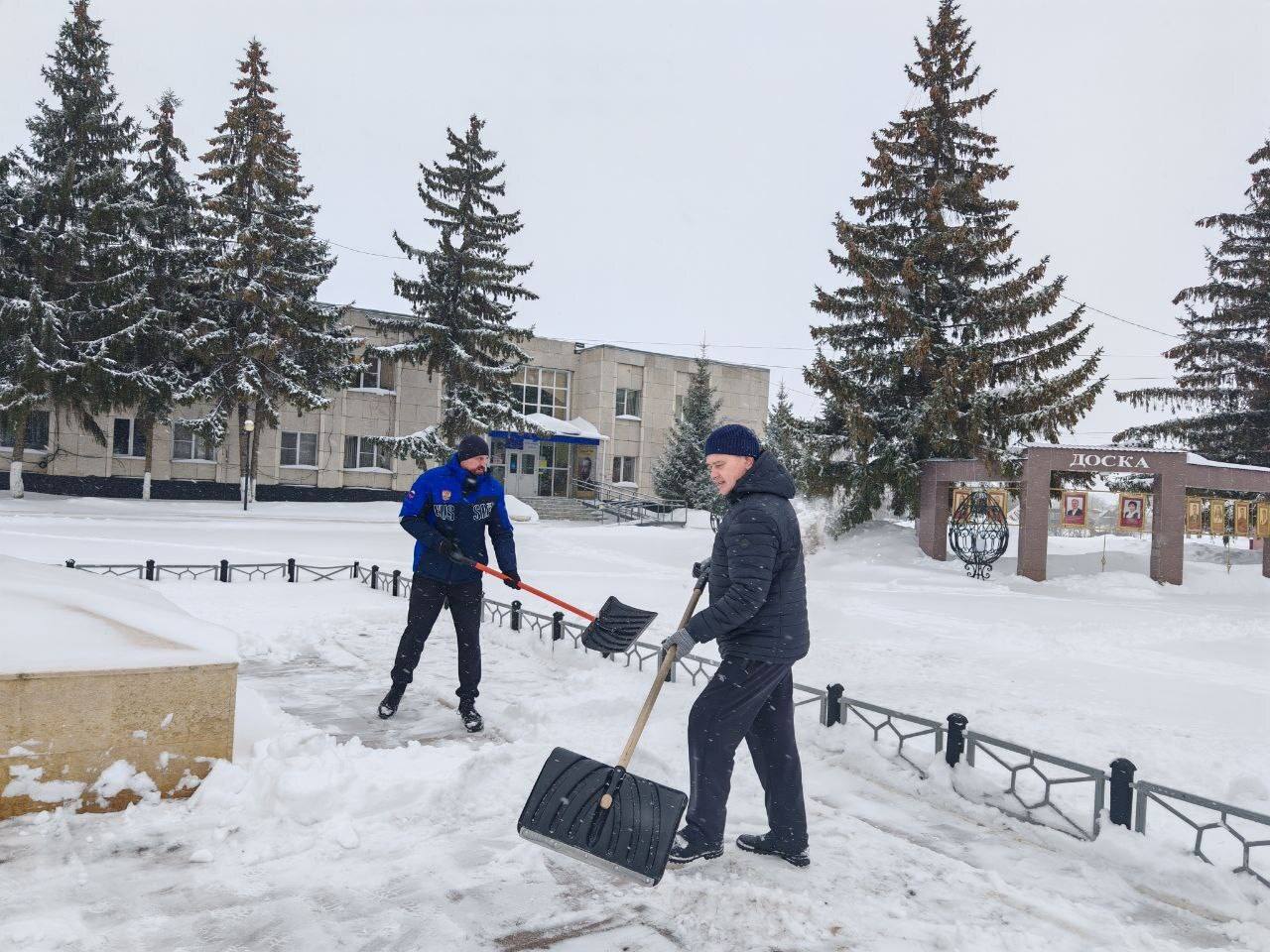 В Чердаклинском районе расчищают не только улицы, но и подходы к соцучреждениям. Также работники администрации совместно с активными жителями района организовали уборку снежного покрова с памятников и общественных пространств.