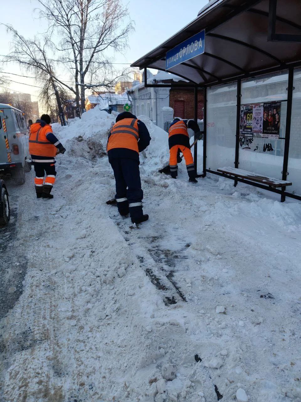 Вывезено 160 самосвалов снега с Ленина (остановки), Тимирязева, Отрадной, Орлова, Гагарина, Тухачевского, Гончарова, Пушкарёвского кольца и Ленинского Комсомола