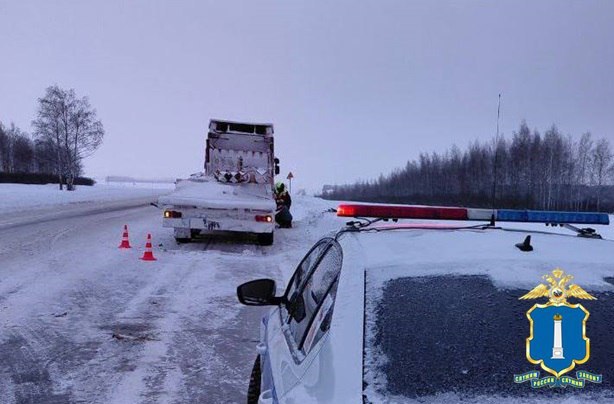 Ульяновские автоинспекторы помогли водителю грузовика, который застрял на трассе из-за оторвавшегося колеса