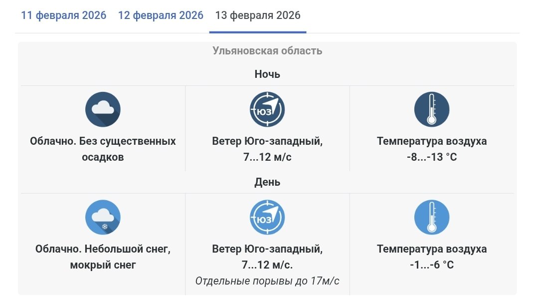 Также в Ульяновской области сохраняется погода без осадков.Днем 11 февраля в регионе ожидается юго-западный ветер, который подует со скоростью 5-10 метров в секунду. Столбик термометра будет колебаться от -8...