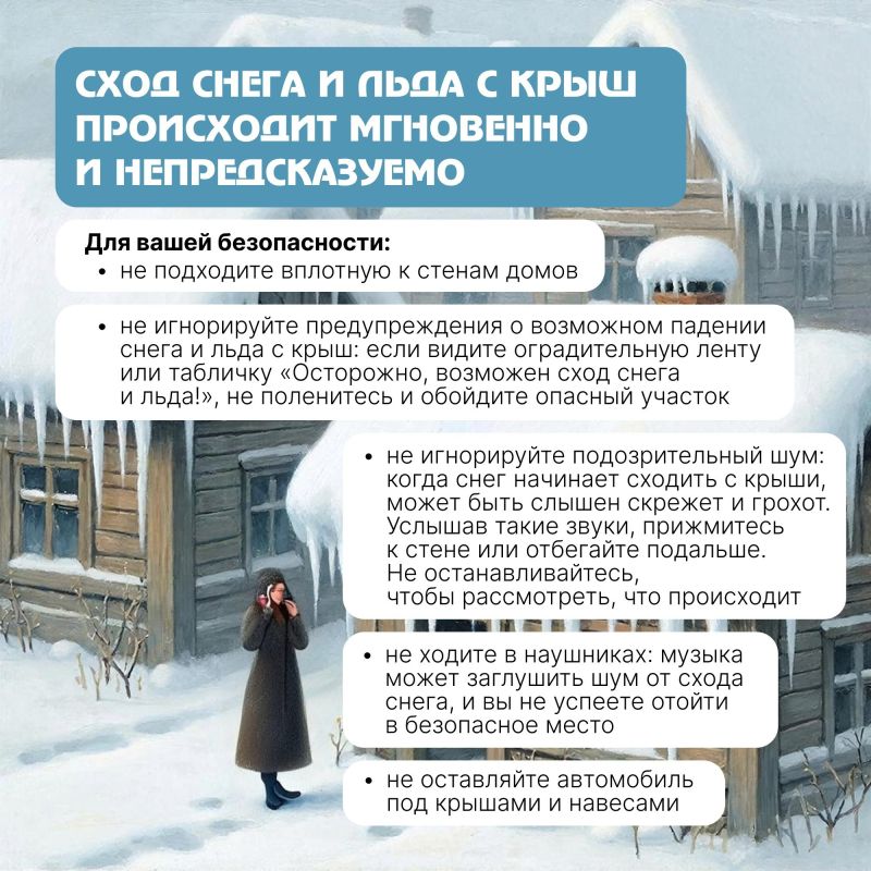 Кто должен следить за состоянием крыш, куда сообщать, если вы заметили наледь или снег, и как вести себя в этот период — подробности в карточках.