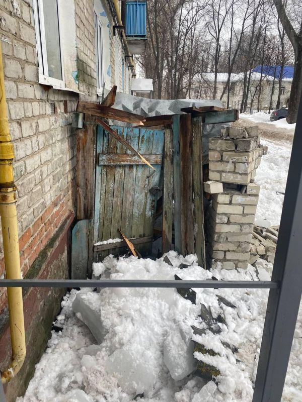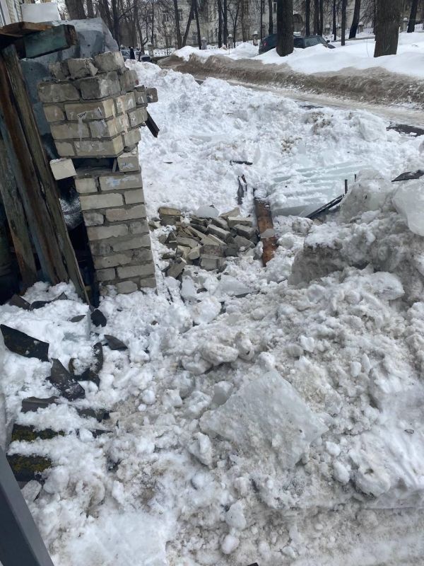 Также в соцсетях сообщают, что на Ефремова, 19 глыба льда пробила вход в подвал, повредив дверь и кирпичную стену.