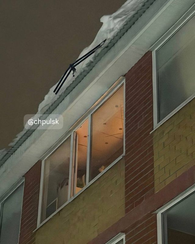 Жителей дома на Ипподромной, 13Г предупреждают: снег с крыши не чистят, а сломанные снегозадержатели падают вниз. Будьте осторожны!