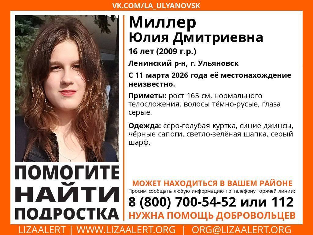 Миллер Юлия Дмитриевна пропала 11 марта в Ленинском районе города Ульяновска