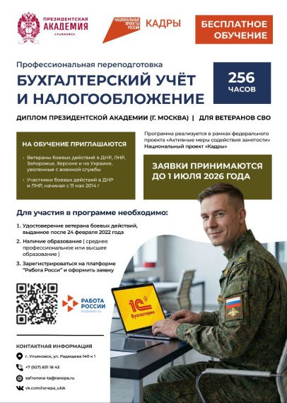 Ульяновцы - ветераны СВО смогут бесплатно освоить профессию бухгалтера