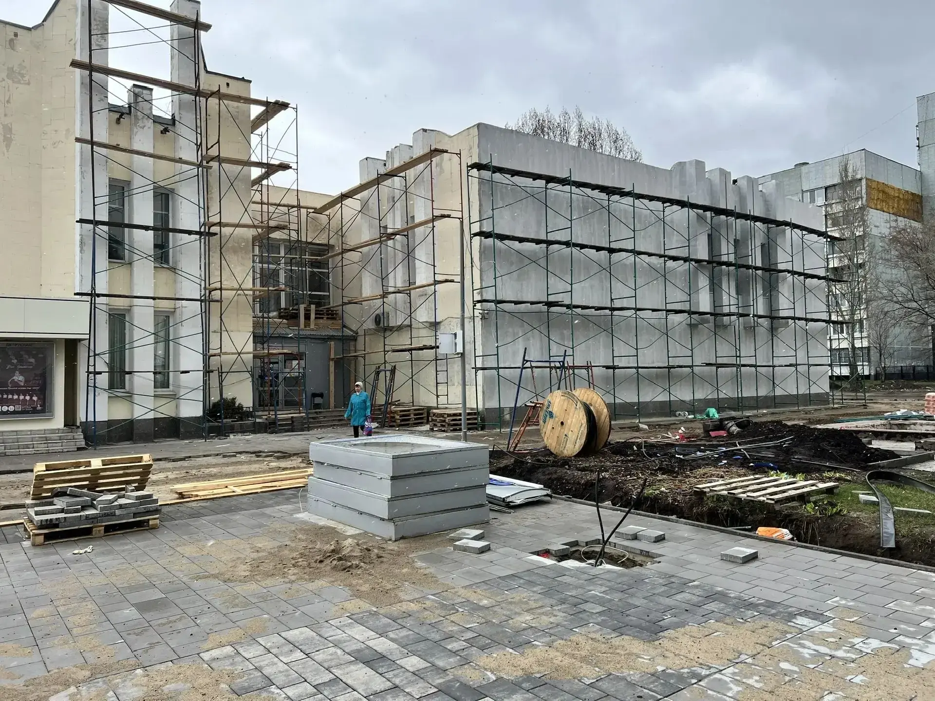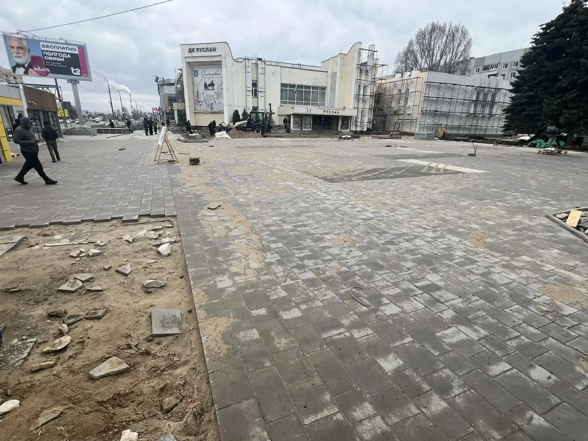 Возле Дворца культуры «Руслан» уложили новую тротуарную плитку