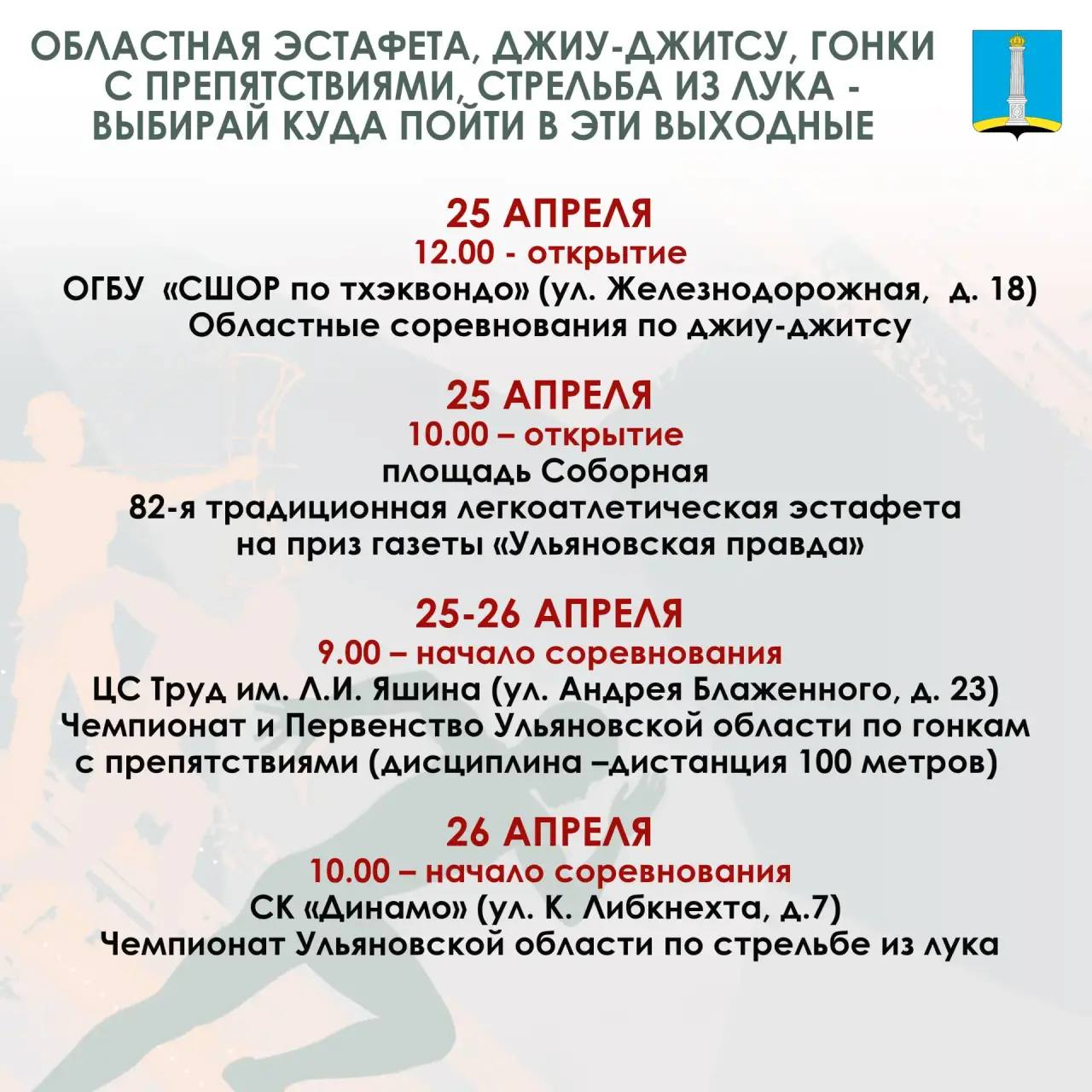 Афиша спортивных мероприятий на выходные