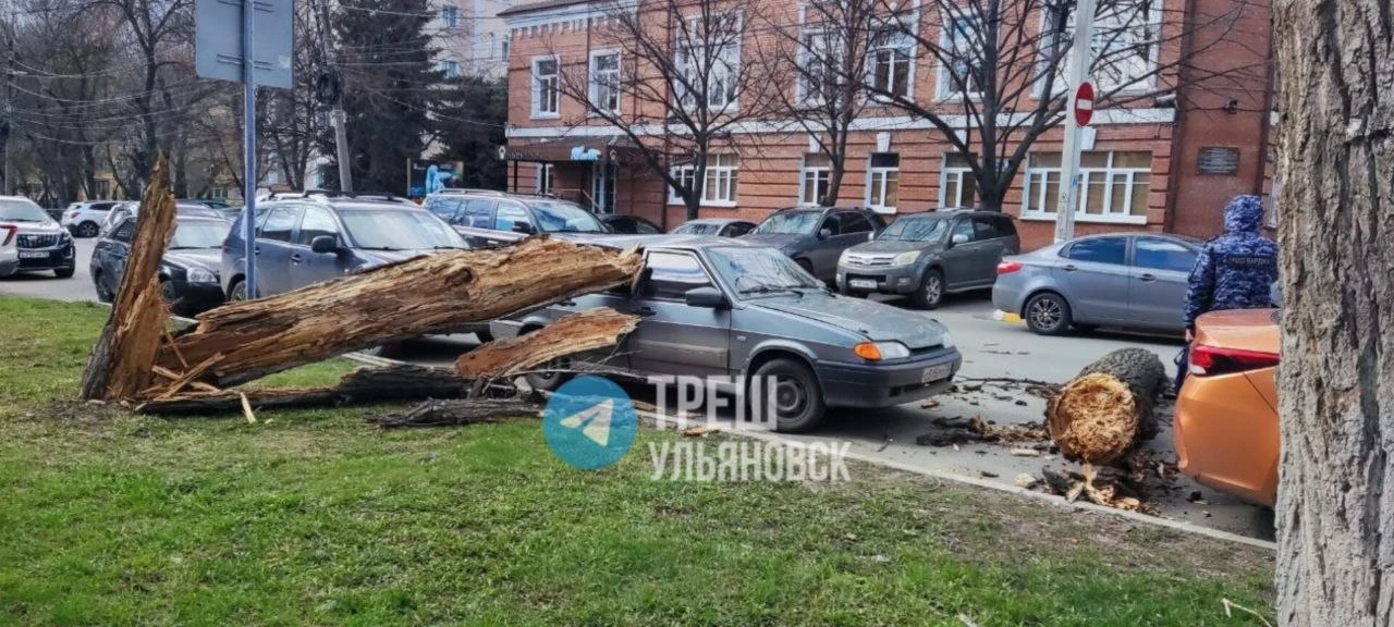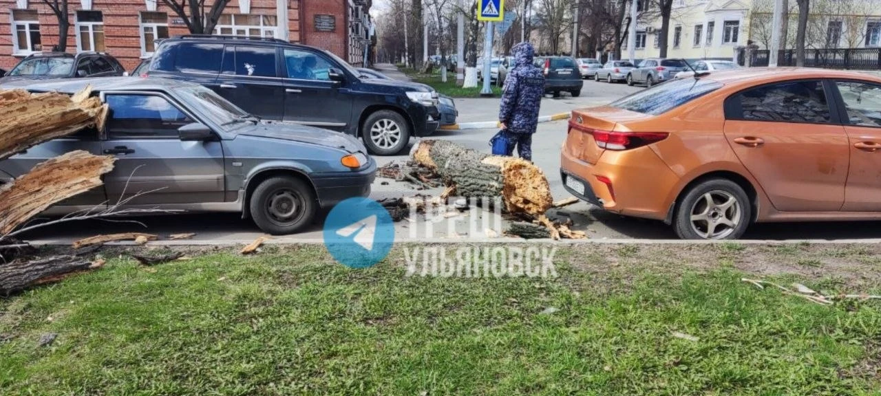Дерево упало сразу на две машины на ул. Льва Толстого