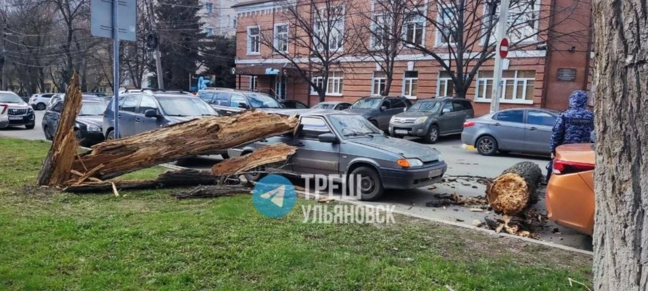 Дерево упало на два автомобиля на улице Льва Толстого.