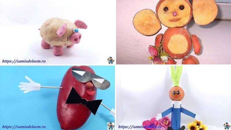Одним из самых оригинальных вариантов оригинальной поделки становится картофельная свинка. Этот простой овощ может превратиться в очаровательного поросенка с помощью элемента фантазии. Следует лишь внимательно рассмотреть картошку и задействовать пластилин для создания деталей, таких как ушки, хвостик и пятачок. Такой проект не только украсит конкурс, но и поможет малышам лучше понимать, на кого именно может быть похож овощ.