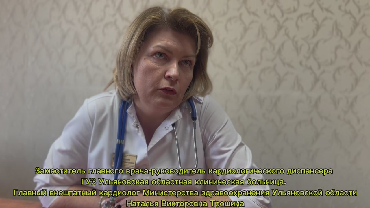Трошина Наталья Викторовна-заместитель главного врача-руководитель кардиологического диспансера ГУЗ Ульяновская областная клиническая больница, главный внештатный кардиолог Министерства здравоохранения Ульяновской области.