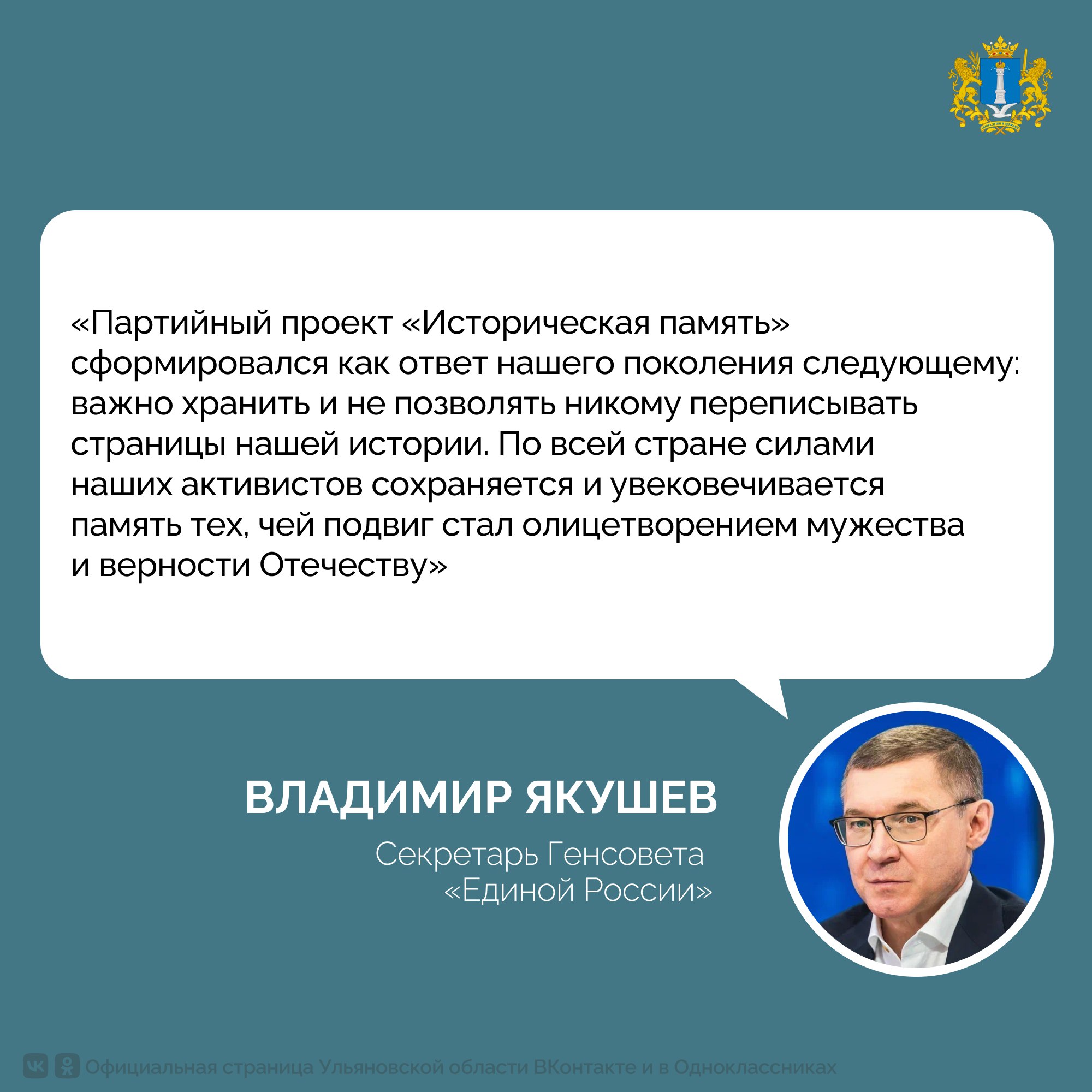 Системную работу в это направлении ведут по одному из флагманских проектов партии – «Историческая память». Его главные задачи – сохранение исторической правды и патриотическое воспитание молодежи