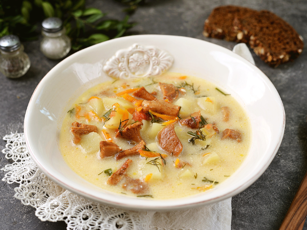 Этот суп порадует всех любителей сытной и ароматной еды. Секрет его густоты и насыщенности заключается в лисичках, которые обжариваются с луком и морковью, чтобы раскрыть все свои вкусовые нюансы. На первом этапе их жарки получаете неповторимый аромат, а плавленый сыр, который добавляется в конце, придаёт кремовую текстуру и легкость.