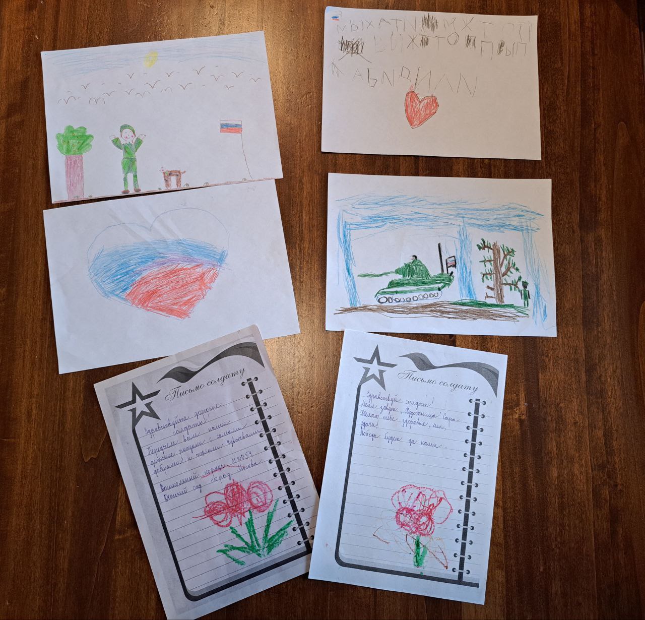 Вместе со своими друзьями из Московского дошкольного корпуса №2054 с любовью нарисовали яркие рисунки для наших отважных бойцов.