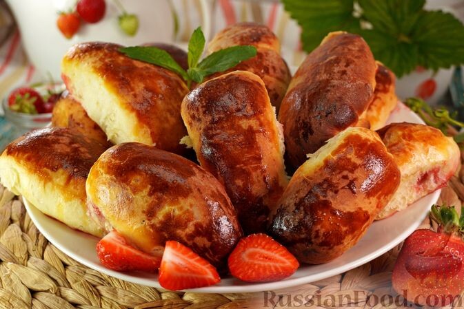 - Пирожки с клубникой: Мягкие и сочные пирожки с освежающей начинкой из клубники — отличный выбор для уютного чаепития.