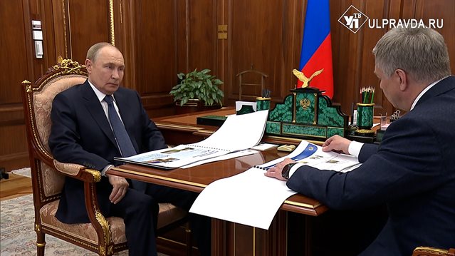 Алексей Русских доложил президенту о ситуации в регионе, мерах поддержки участников СВО, а также об участии Ульяновской области в восстановлении новых регионов.