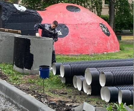 Всего в этом году мы планируем обустроить систему отвода дождевых и талых вод на 32 участках.