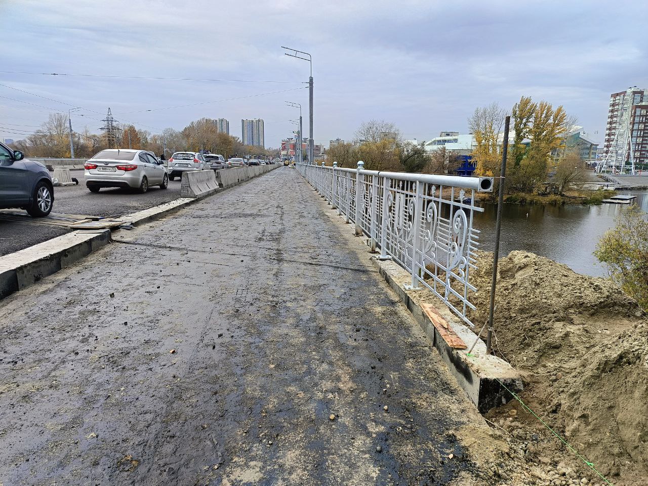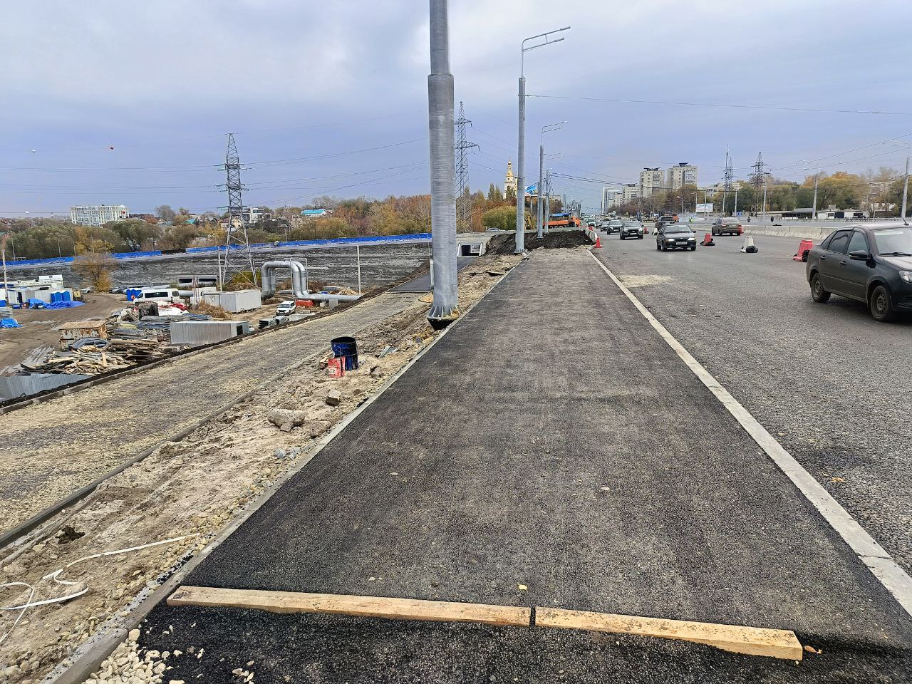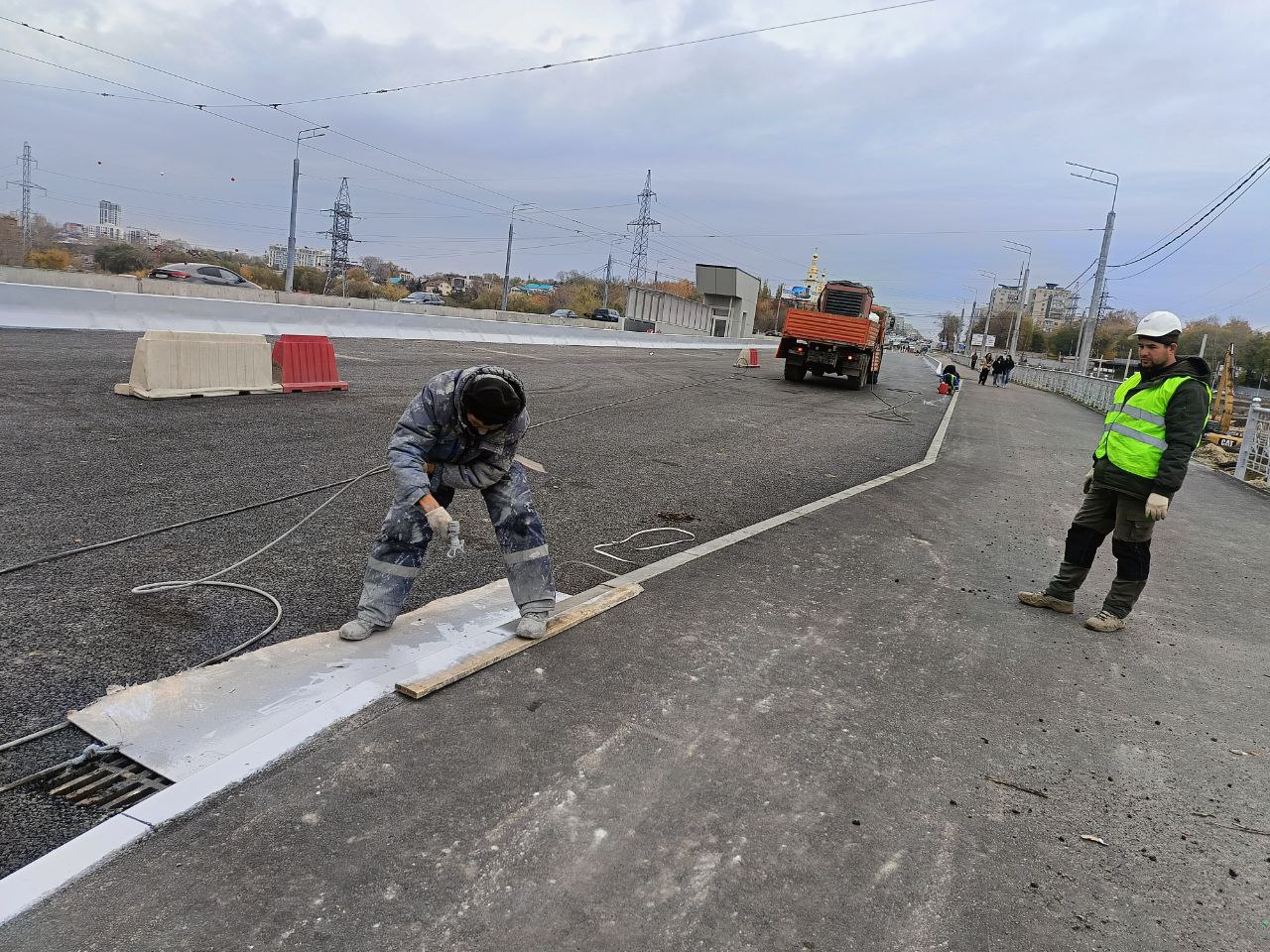 Также на участке моста со стороны УлГУ завершается покраска блоков типа «нью-джерси», отделяющих проезжую часть от пешеходной и трамвайных путей.