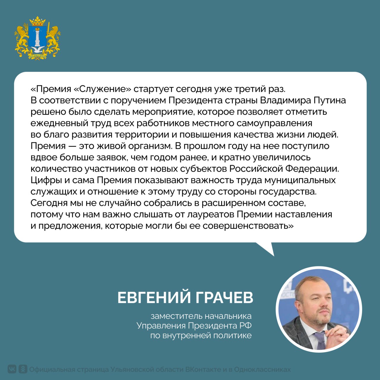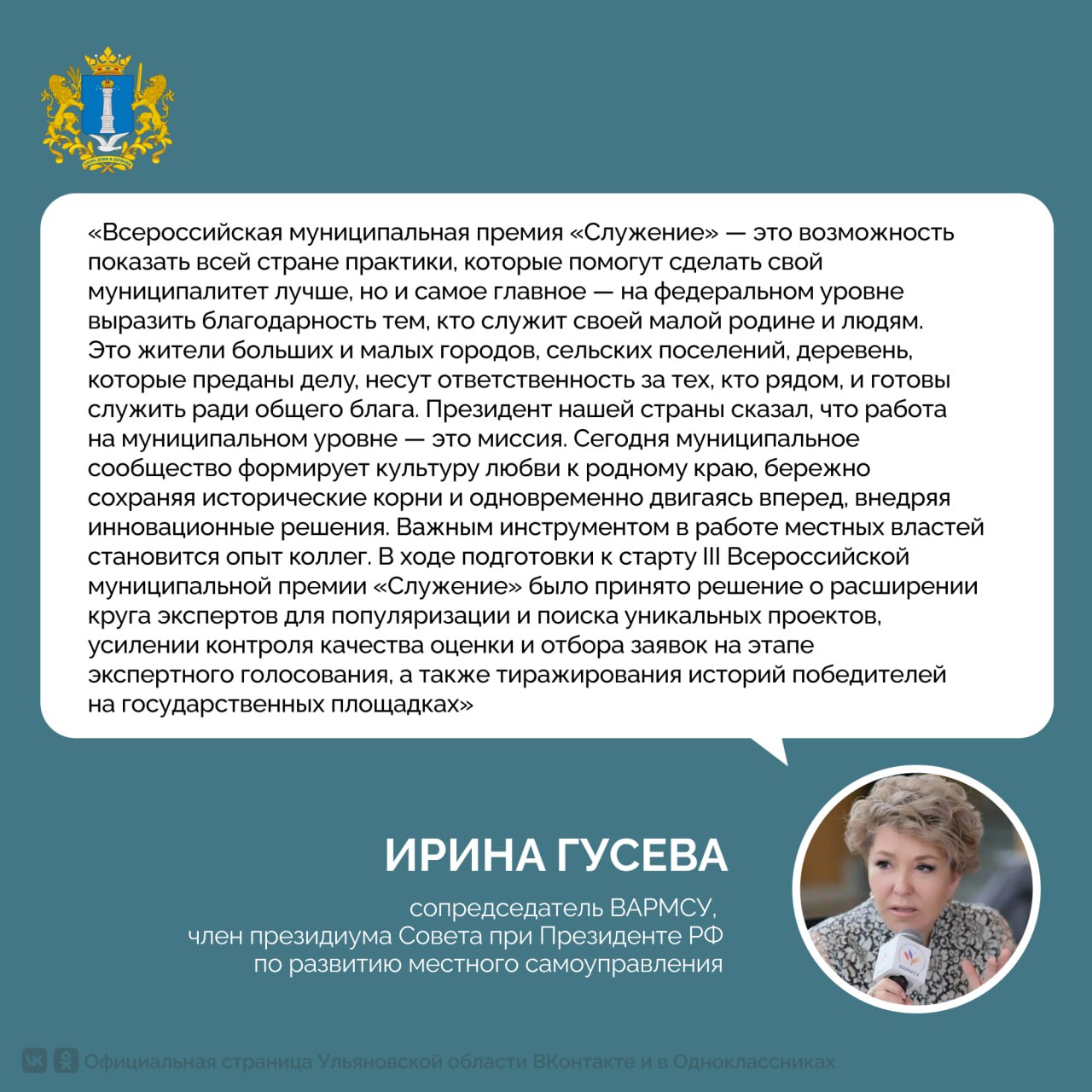 Стартовал прием заявок на III Всероссийскую муниципальную премию «Служение».