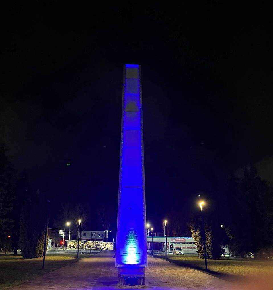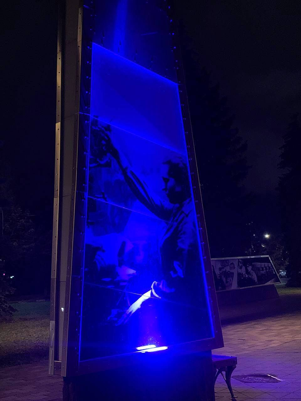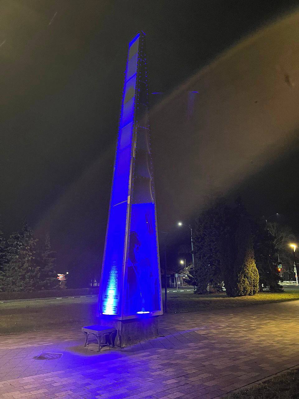 По информации профильного учреждения, новая синяя подсветка установлена по трем сторонам стелы и подсвечивает нанесенные на неё изображения