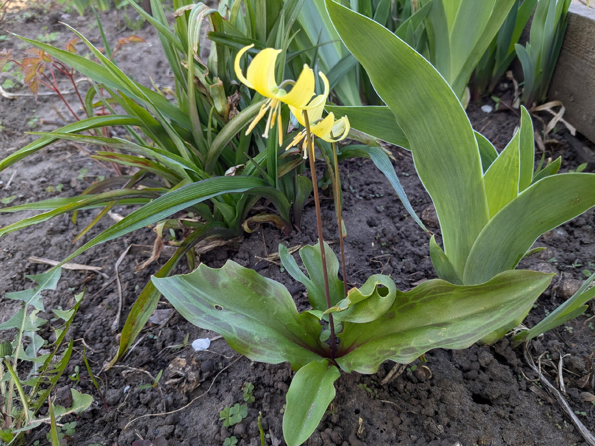 В ходе небольшого расследования выяснилось, что в осень 2020 года были закопаны три полусохлых луковки желтого кандыка под названием "Пагода". Хотя этот момент не остался в памяти, архивные фото упаковок с луковицами подтвердили это. После неудачной попытки вырасти цветок в прошлом году, о нем забыли. Казалось, что эта история закончилась раньше, чем началась.