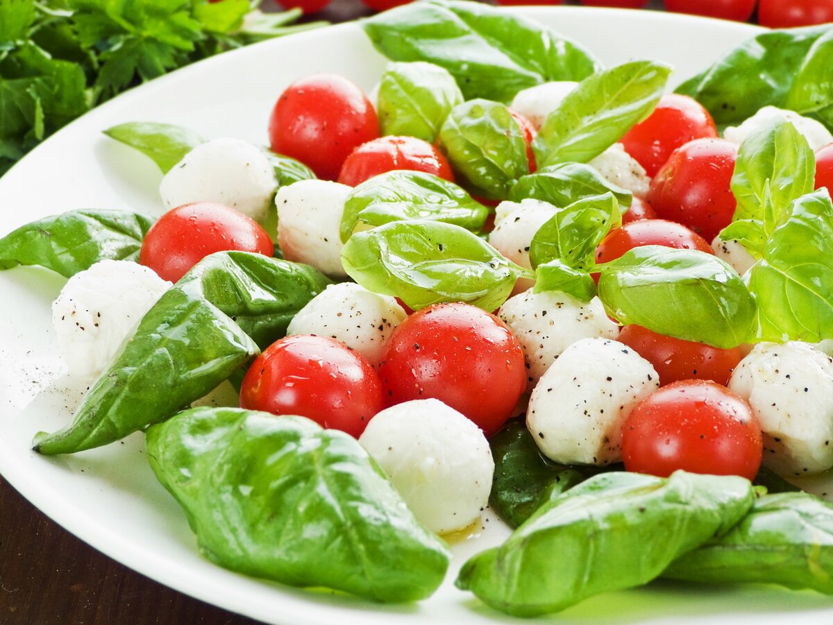 Этот салат не только вкусный, но и полезный. В нем содержатся витамины и антиоксиданты, способствующие укреплению здоровья и улучшению состояния кожи. Базилик добавляет не только аромат, но и антибактериальные свойства, а моцарелла делает рацион более сбалансированным за счет белка и кальция. Не упустите возможность порадовать себя и близких этим освежающим лакомством!