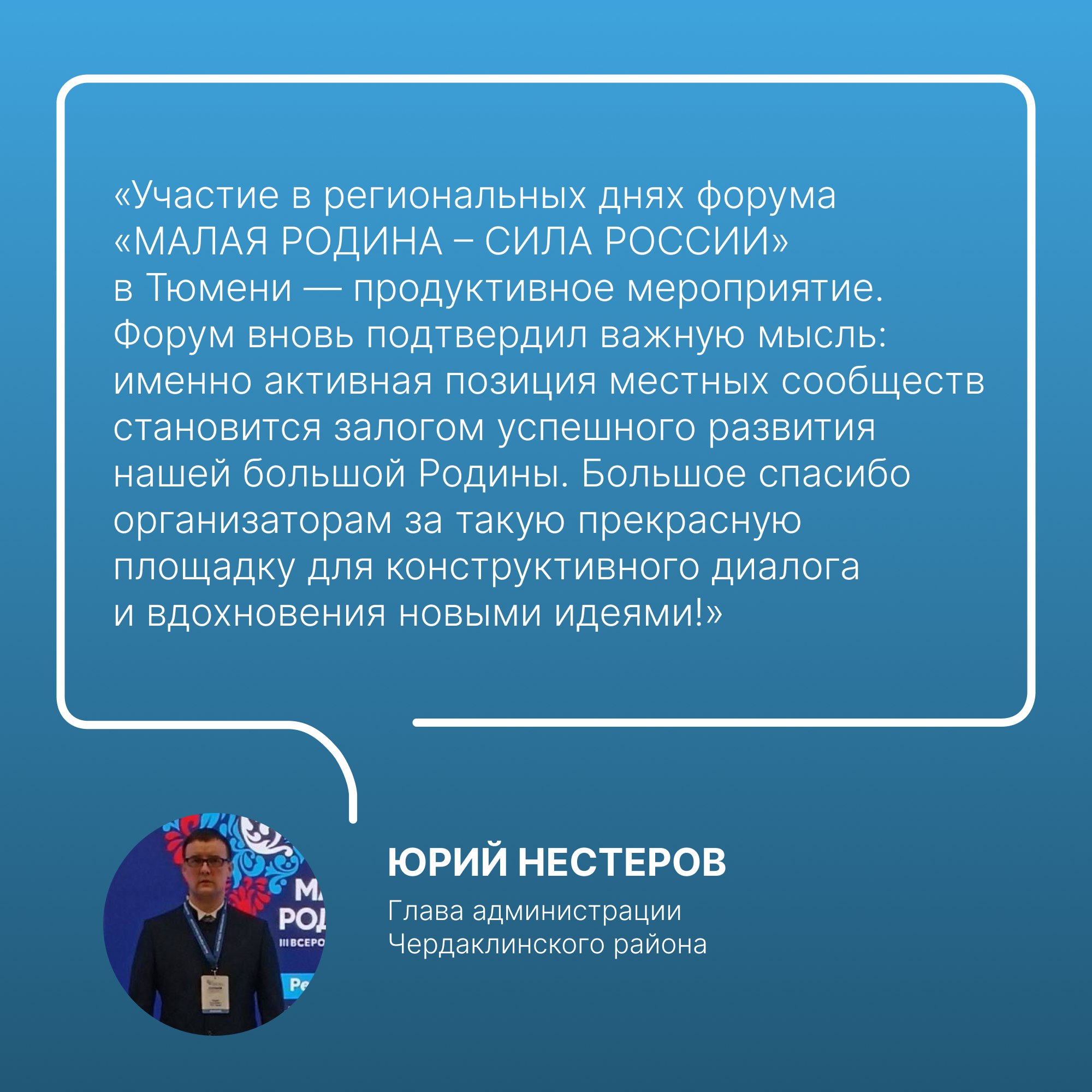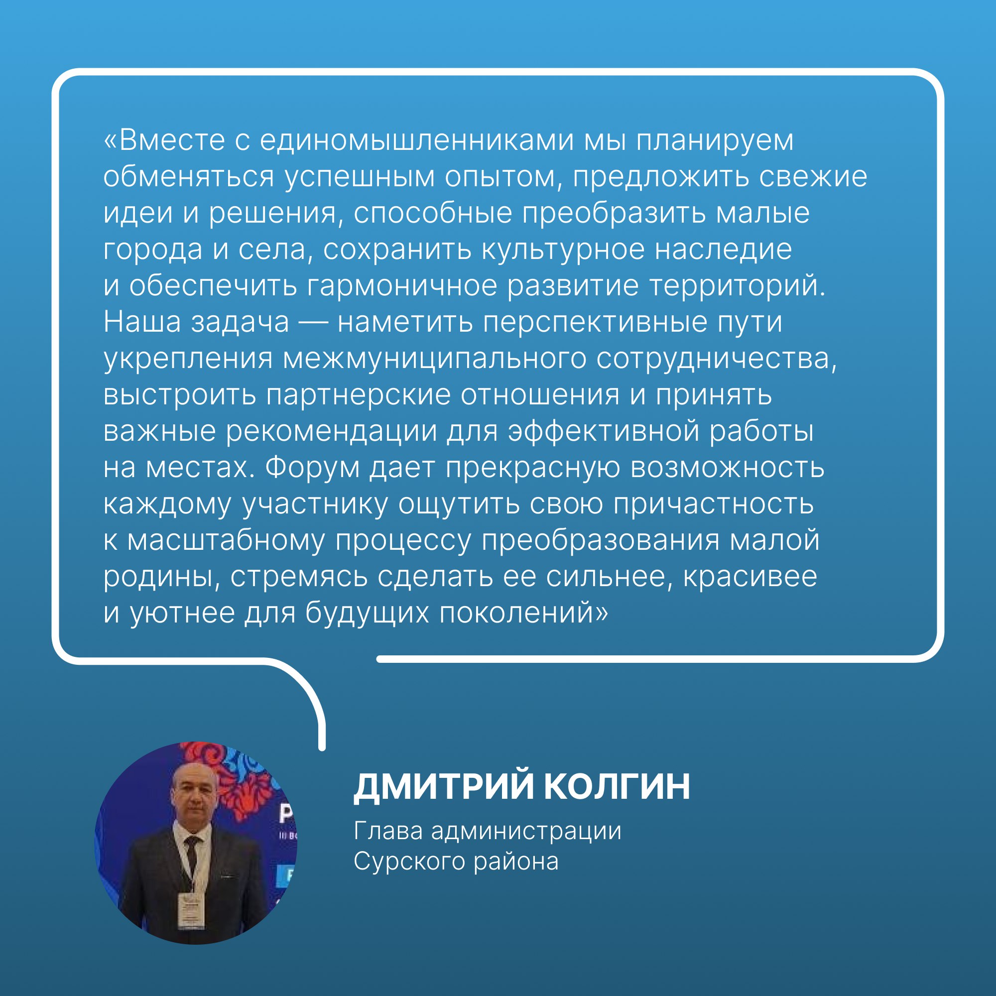 Мероприятие провела в Тюмени Всероссийская ассоциация развития местного самоуправления (ВАРМСУ), по поручению президента России. От Ульяновской области участвовали главы Сурского района Дмитрий Колгин и Чердаклинского района Юрий Нестеров.