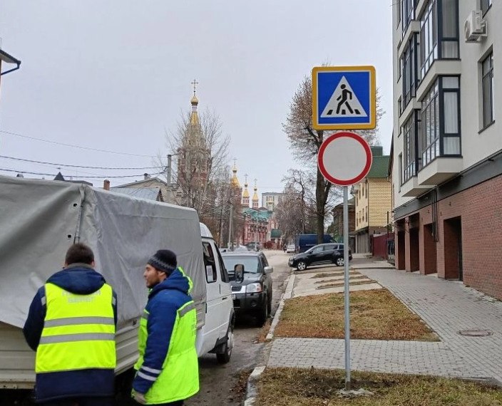 Специалисты МБУ «Правый берег» вели восстановление и замену дорожных знаков на улицах Красногвардейской, Александра Матросова и в переулке Гоголя.