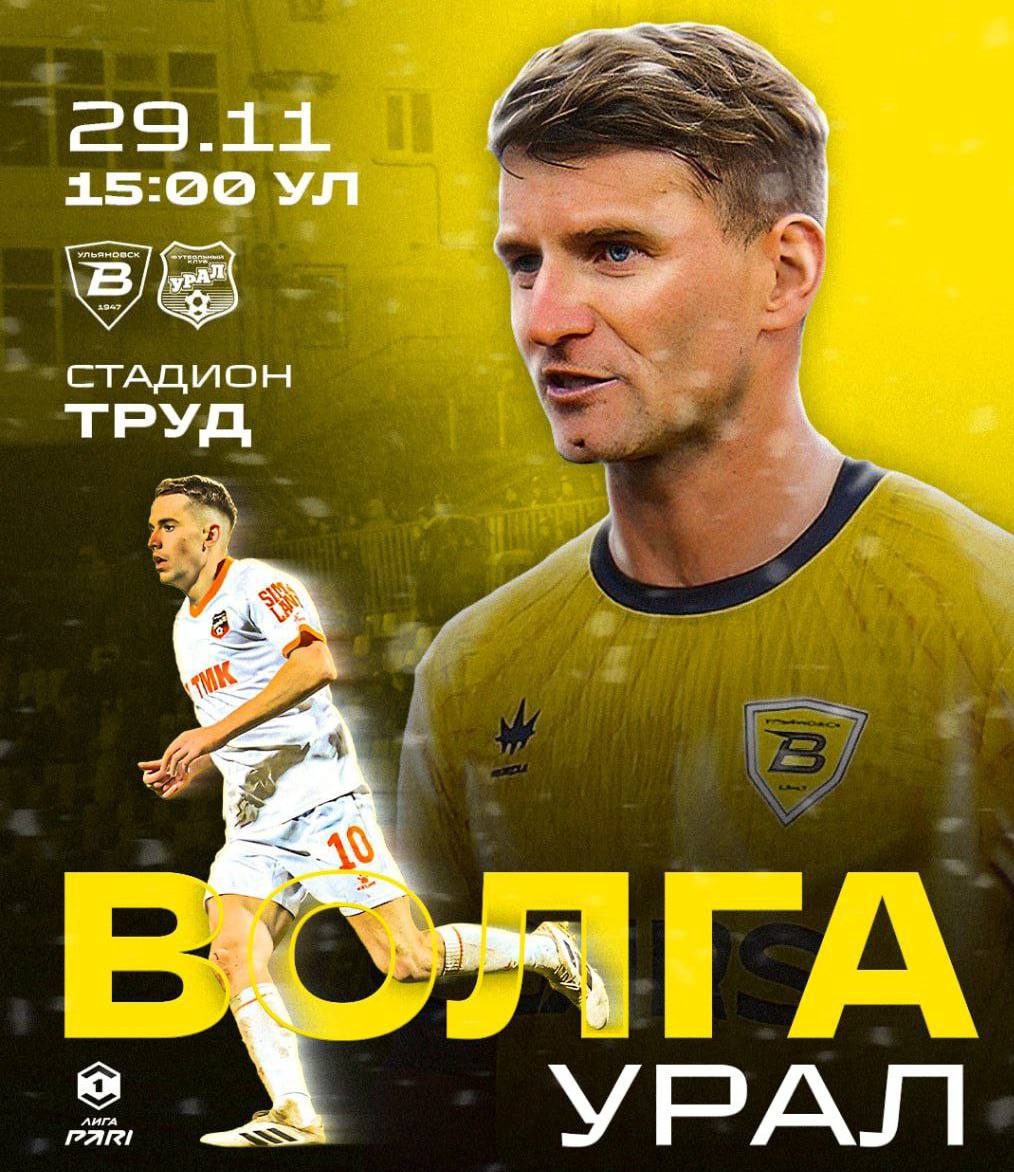 В Ульяновске 29 ноября «Волга» проведёт футбольный матч с екатеринбургским «Уралом»