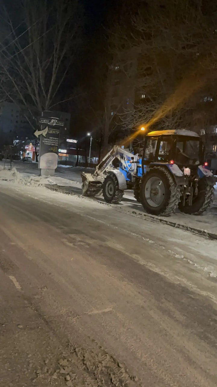 Пескосоляной смесью обработаны тротуары на проспектах Академика Филатова, Нариманова, Туполева, 50-летия ВЛКСМ, улицах 12 Сентября, Кирова, Пушкинской, Куйбышева, Карсунской, Минаева, Радищева, Шевченко, Маяковского, Защитников Отечества, Декабристов, Юности, Пушкарёва, Смычки, Доватора, Корунковой, Фруктовой и на развилке к Президентскому мосту