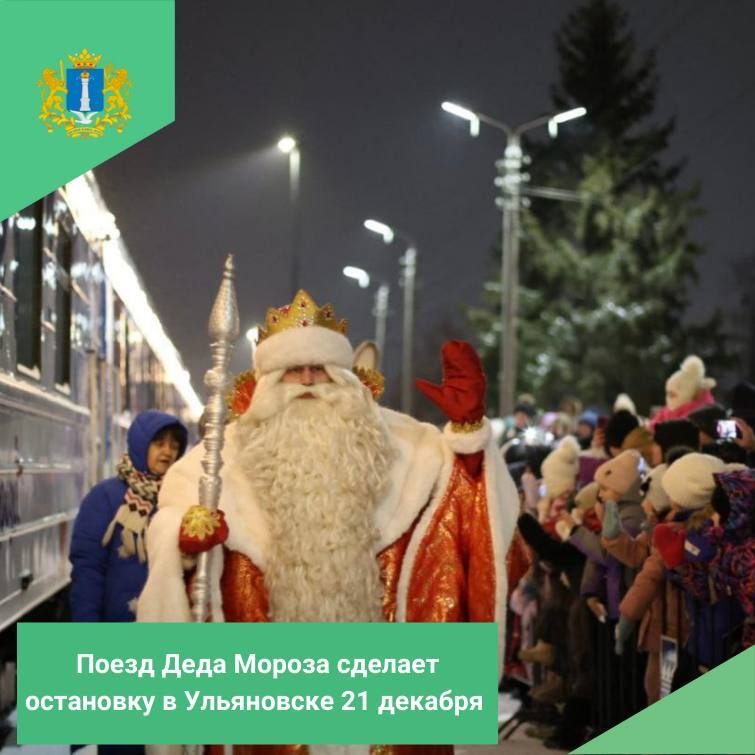 21 декабря 2025 года Поезд Деда Мороза сделает остановку на железнодорожном вокзале Ульяновск-Центральный. В эту дату с 11:00 до 18:40 (время местное) на перроне для жителей и гостей города будет организована праздничная программа с участием аниматоров и артистов.