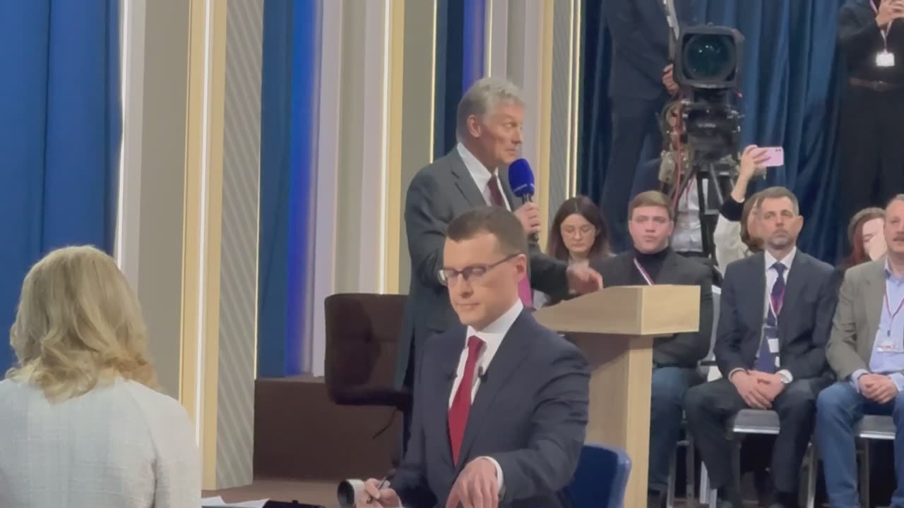 ЦУ перед началом пресс-конференции журналистам дает Дмитрий Песков