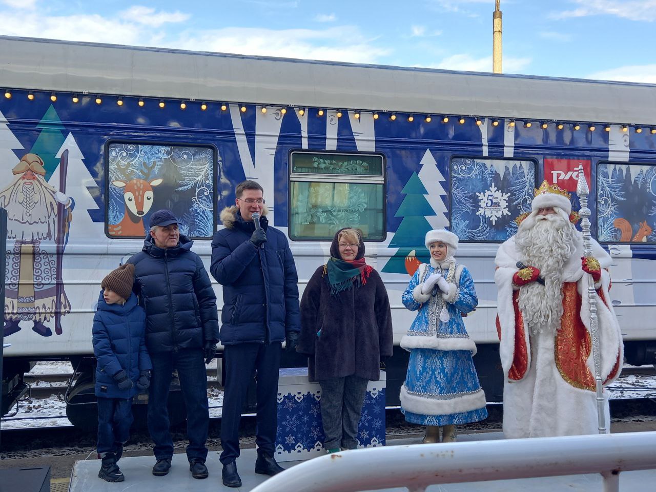 Тот самый волшебный состав, который путешествует по всей России и дарит праздник детям и взрослым, сегодня сделал остановку в нашем городе. Поезд везёт с собой атмосферу настоящей зимней сказки: огни, музыку, подарки и, конечно, самого Деда Мороза.