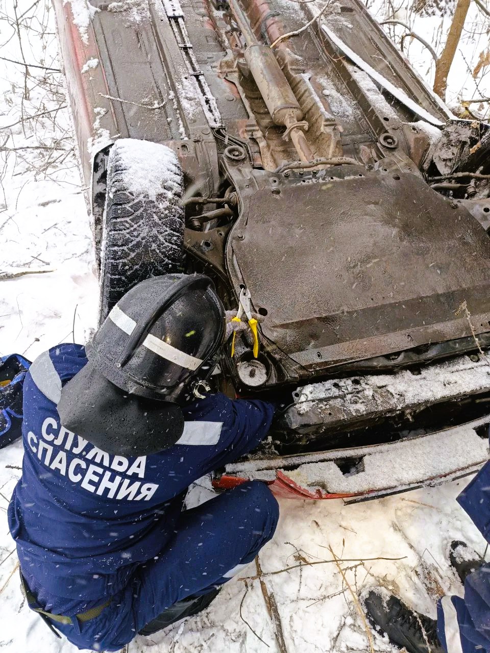 В Ульяновске спасатели оказали помощь водителю улетевшей в кювет машины