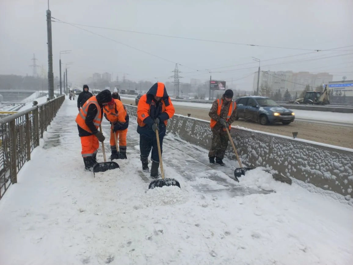 Бригады рабочих вручную убирают остановочные площадки, подходы к пешеходным переходам. В районах пути к социальным учреждениям расчищают арендованные трактора.