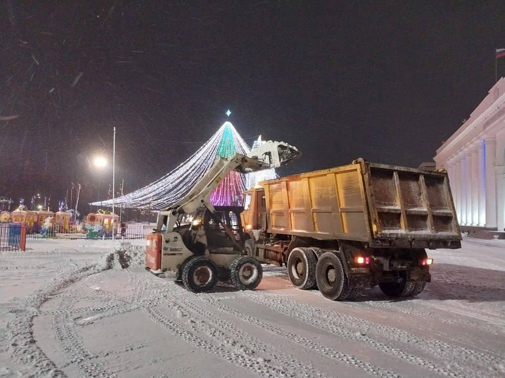 В преддверии открытия главной новогодней ёлки вывоз снега был организован на Соборной площади, эспланаде и бульваре Новый Венец, а также на проспекте Гая, улицах Тимирязева, Розы Люксембург, Симбирской, Локомотивной, Хрустальной и Луначарского