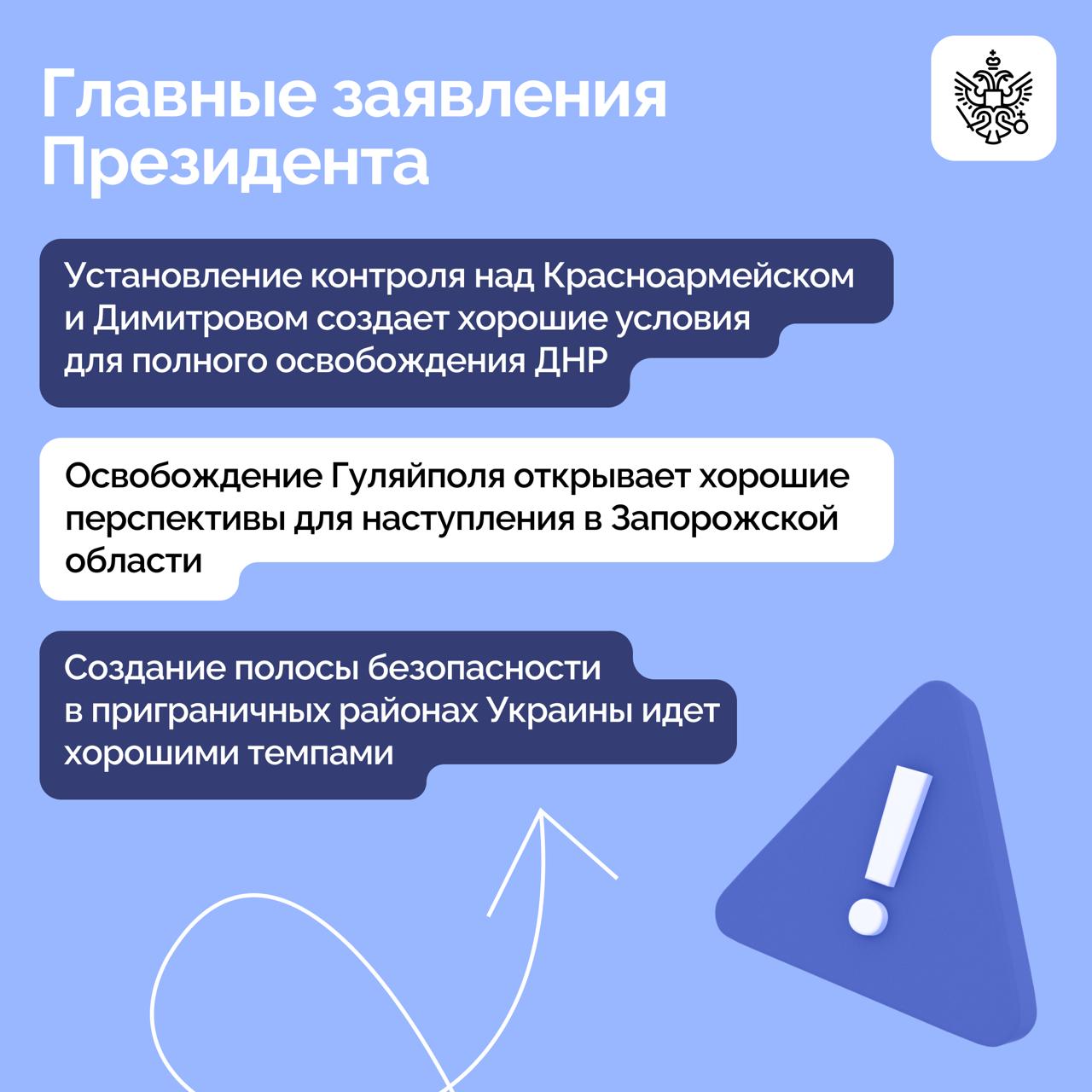 Отдельное внимание было уделено ходу выполнения боевых задач, освобождению Димитрова в ДНР и Гуляйполя в Запорожской области.
