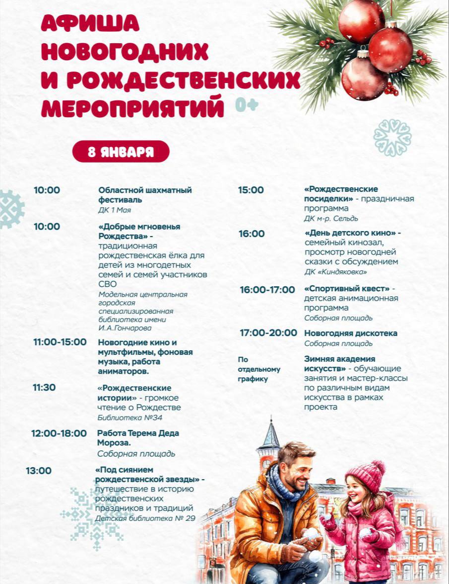 Для юных ульяновцев из многодетных семей и семей участников специальной военной операции прошли игры, познавательные лекции и праздничный спектакльПрограмма новогодних мероприятий на 9 января в УльяновскеПраздничные мероприятия и...