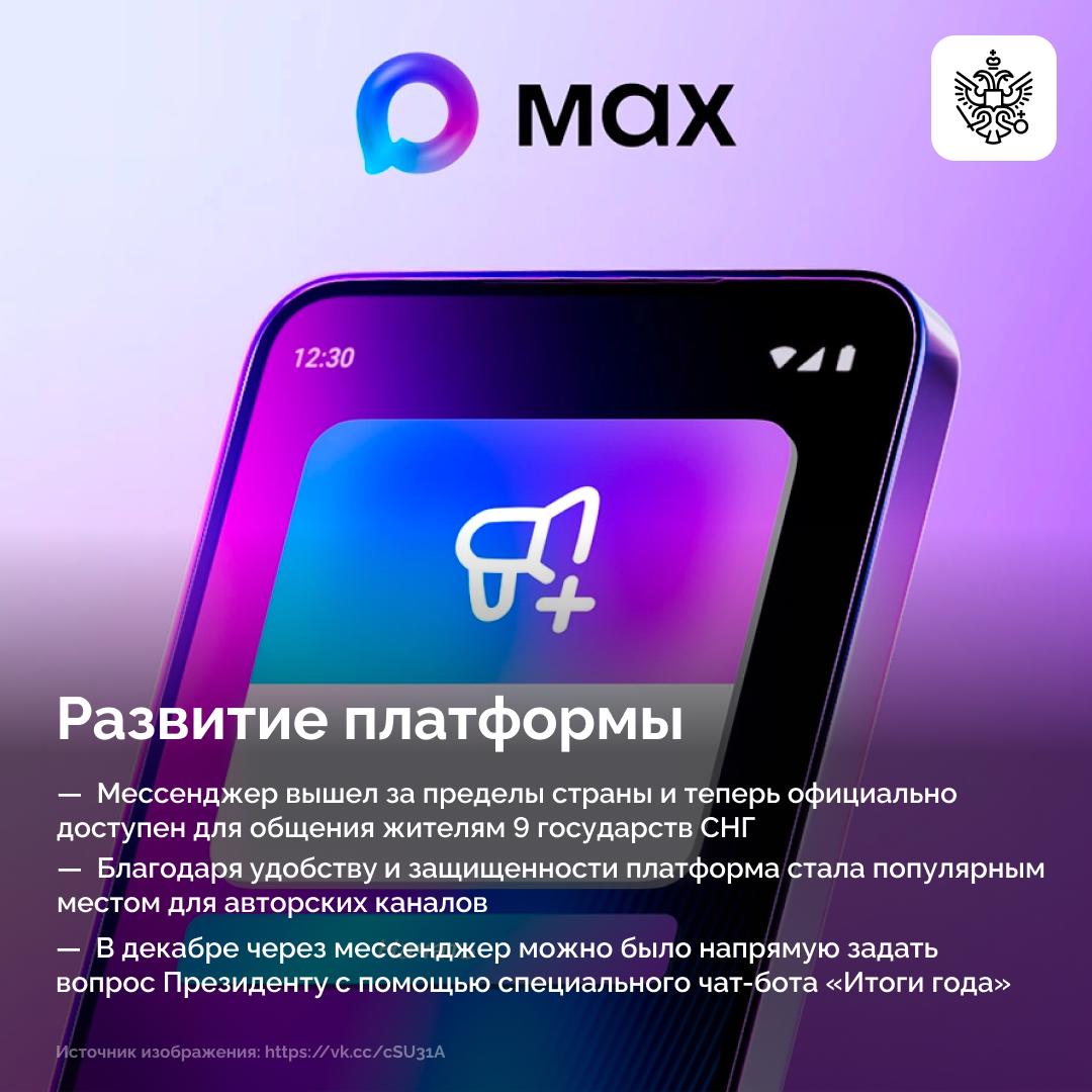 Ключевым инструментом технологической независимости стал мессенджер МАХ, объединивший коммуникации, госсервисы и бизнес-среду. К декабрю число пользователей платформы достигло 80 млн человек.