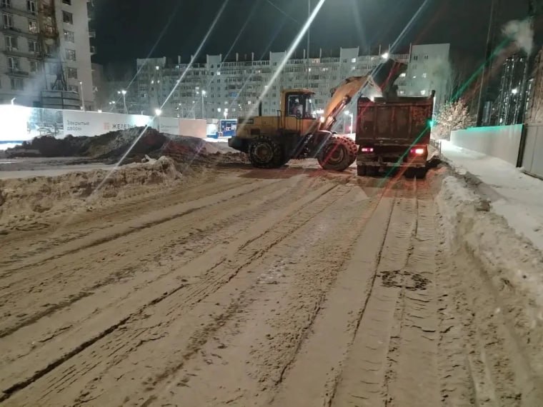 Днём 11 и в ночь на 12 января с улиц Минаева, Марата, Крымова, Гагарина, Гончарова, Энгельса, Спасской и Корюкина, переулков Молочного и Матросова самосвалы совершили 155 рейсов по вывозу снежных масс. Расширение дорог ротором велось на проспекте Гая, улицах Хрустальной, Варейкиса, Луначарского, Кольцевой и Ефремова