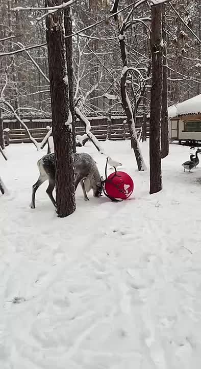 Северный олень Барон в Ульяновском зоопарке решил в праздники использовать шар по назначению