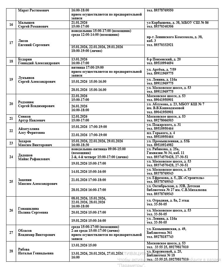 Ежемесячно городские парламентарии проводят личные приёмы в округах и в местных отделениях партий.