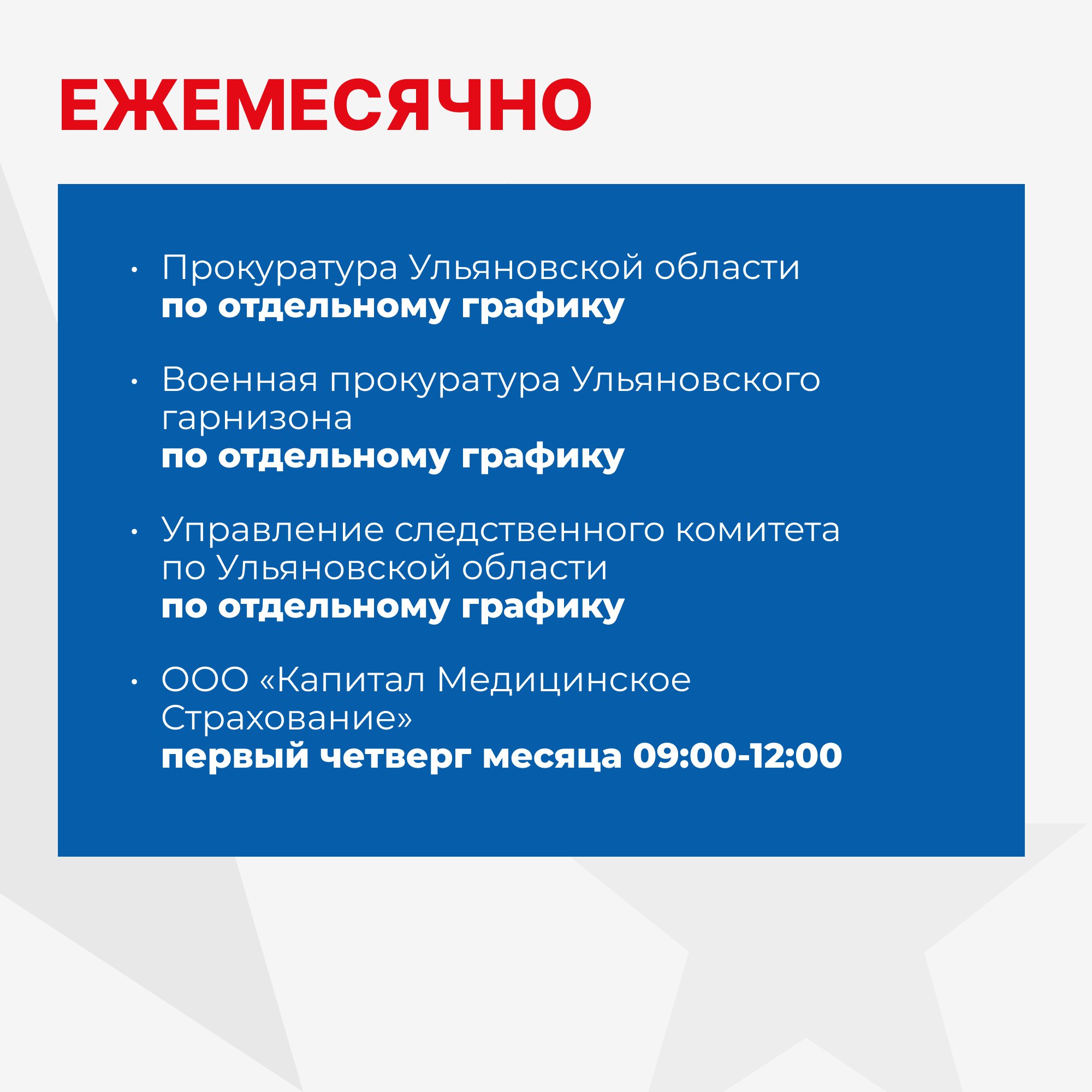 Нужна помощь? В ульяновском филиале фонда «Защитники Отечества» её могут получить по предварительной записи участники, ветераны СВО и члены их семей. Специалисты разных служб регулярно проводят здесь консультации. Смотрите подробное расписание в карточках