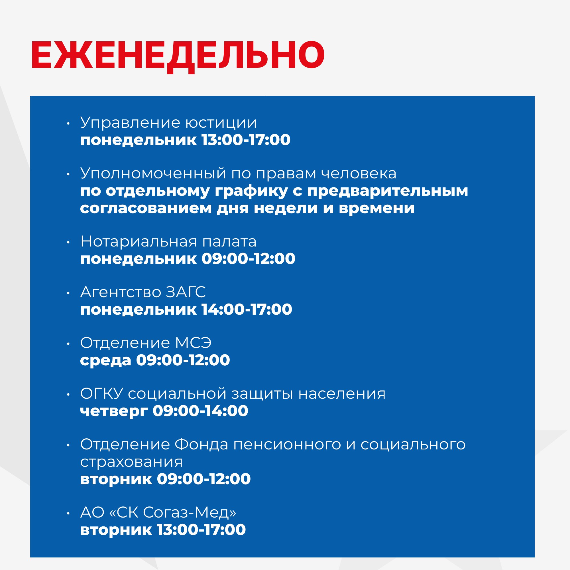 График приема специалистов в филиале Фонда «Защитники Отечества»