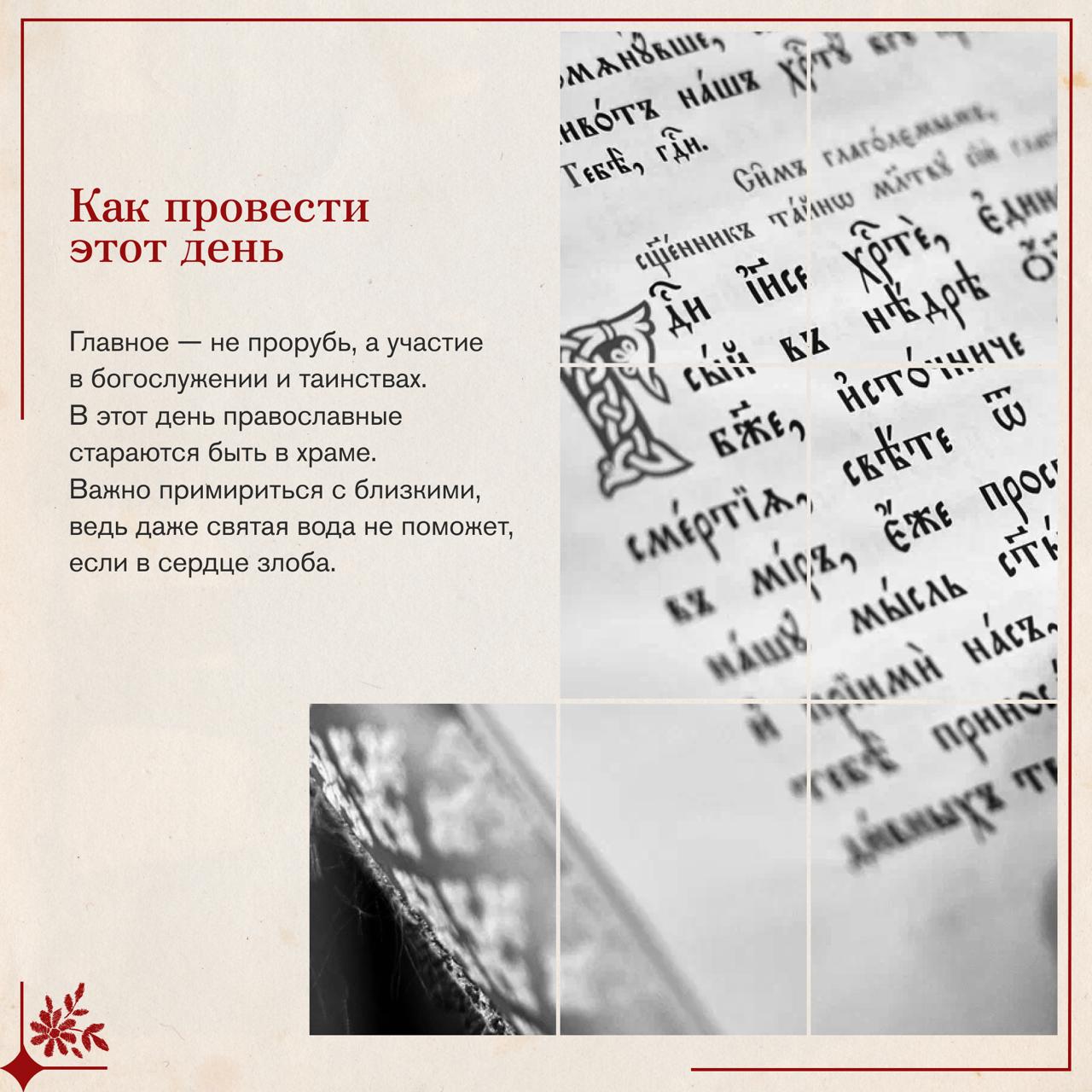В этот день вспоминают, как пророк Иоанн крестил народ в Иордане в знак покаяния. Христос тоже вошел в воду, хотя был абсолютно безгрешен. Он сделал это не чтобы очиститься Самому, а чтобы Своим погружением освятить водную стихию и всю материю мира.