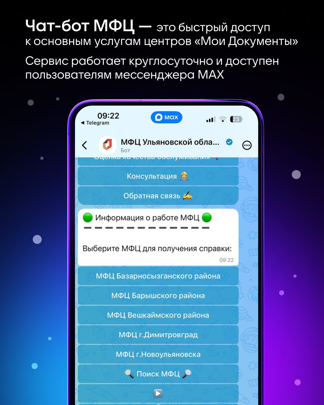 Подключайтесь и пользуйтесь удобным цифровым помощником: https://max.ru/mfc_ulyanovsk_max_bot