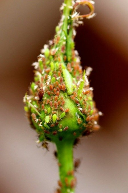Как правило, тли могут быть как зелеными, так и черными и чаще всего скапливаются на листьях и бутонах. Если рядом наблюдаются муравьи, это также может говорить о наличии тли, так как они нередко взаимодействуют с этими вредителями.